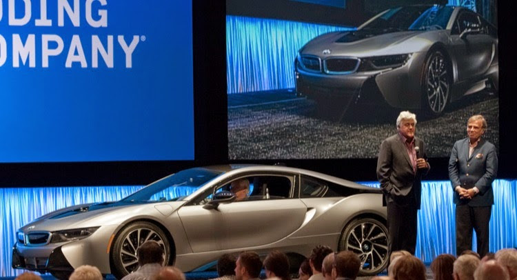 The car was sold Saturday night during during Gooding & Company’s annual Pebble Beach Auctions, presented by both Leno and BMW North America CEO Ludwig Willisch. It fetched $825,000, up substantially from the $135,700 sticker price of an i8. BMW says it's a record price for an i8 sold at auction, although how many i8s have actually been auctioned off yet, anyway?