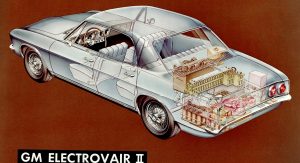 That isn’t too surprising, but GM has been working on electric vehicles for more than a century. We told you about the XP 512E a few months ago, and now we’ll take a look at the 1964 Electrovair.