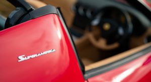 Power comes from a naturally aspirated 5.7-liter V12 engine that produces 532 HP (540 PS) and is paired to Ferrari’s F1 single-clutch F1 semi-automatic transmission. Only a handful of 575 Superamericas were made with a manual gearbox. At the time of its reveal, Ferrari claimed that the Superamerica was the world’s fastest convertible with a top speed of 199 mph (320 km/h).