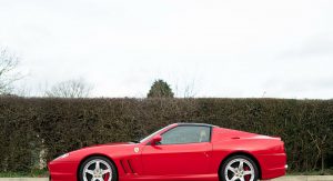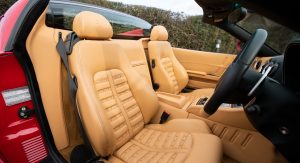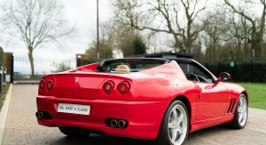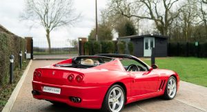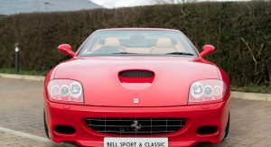 This specific Ferrari 575 Superamerica is finished in Rosso Corsa over Beige leather upholstery with contrast stitching. It’s offered for sale in the UK by Bell Sport & Classic for £299,950 (around $373,600 in current exchange rates), accompanied by a fully documented service history.