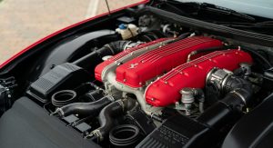 It’s also equipped with the desirable Handling Gran Turismo Competizione Pack (HGTC) package that included a sportier suspension setup. This topless 575 also comes with carbon brakes and red calipers, as well as a louder sports exhaust system.