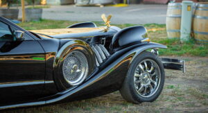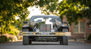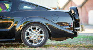 Looking just as uncanny as ever, the fine folk over at Zimmer Motorcars saw fit to remove the front clip from a Mustang and add what appears to be a significant amount of length to it. They also added swooping, ’30s style fenders to the front and rear, as well as a faux spare tire at the back and two spares nestled behind the front fenders. You never know when you’ll have multiple flats in a single journey, I suppose.
