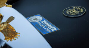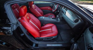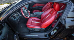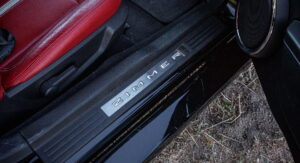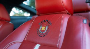 The company also reupholstered the front seats, door cards, and steering wheel in red leather to really give the car that classic feel. Zimmer door sill plates and embroidery can be found throughout the interior.