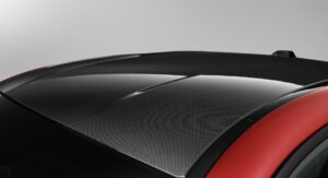 Of course, while the design may be a bit OTT, a lot of it is functional. The intakes up front are said to be optimized for cooling of the powertrain and brakes. The aft apron, combined with the spoiler, generates real downforce for the rear axle. There’s an optional carbon fiber roof too, while the muscular fenders allow for a wider track than the standard car.